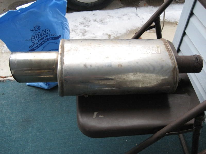 I am going to get some measurements and pics of the muffler tomorrow. Its a used Magnaflow Muffler, no holes, no rust, good shape but it is dirty and needs to be cleaned from the outside.