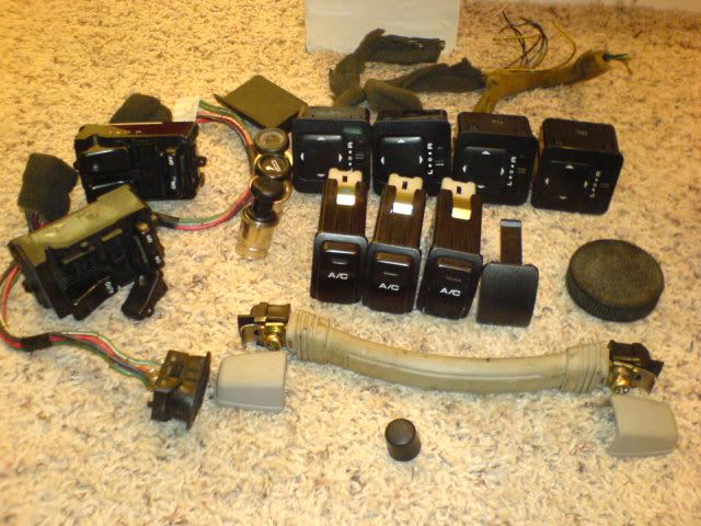 various sunroof controls/interior lights - maybe a good project to paint them black? tan sunroof, grey sunroof SOLD, grey no sunroof silver foil inside, also an extra lense