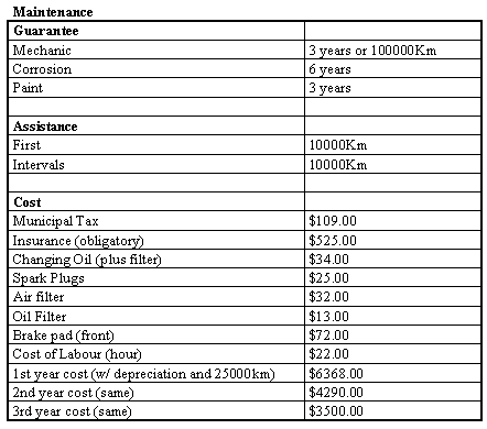 The performance table show us a maximum speed of 202 km/h and a acceleration of 8.5 sec to reach 100 km/h.