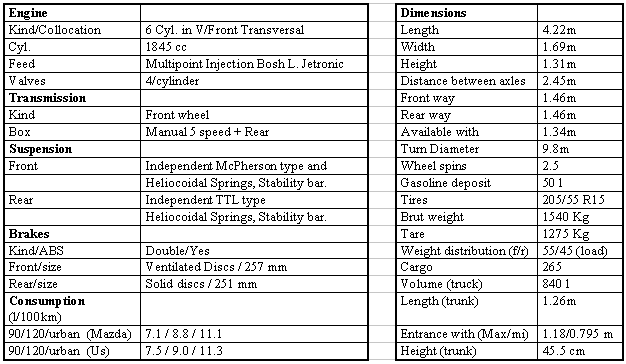 nothing in this Mazda does. The principal, and only, negative point is that the maximum legal speed is 110 Km/h...